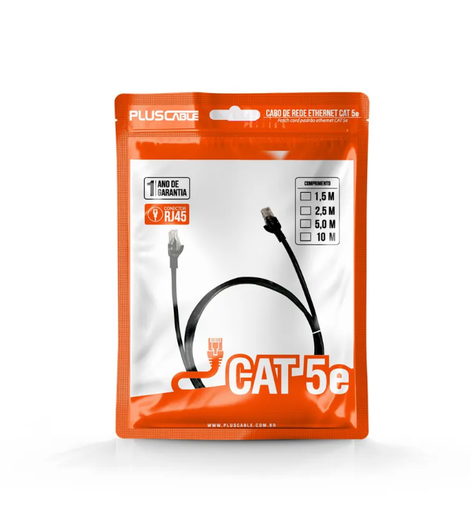 O CABO DE REDE/ PATCH CORD CAT5E 1.5M PC-ETHU15BK - PLUS CABLE tem capa injetada que garante maior qualidade e desempenho no cabeamento estruturado. Ideal para conectar pontos de rede em estação de trabalho e os Patch Panels aos equipamentos ativos da rede, como switches, roteadores, entre outros.